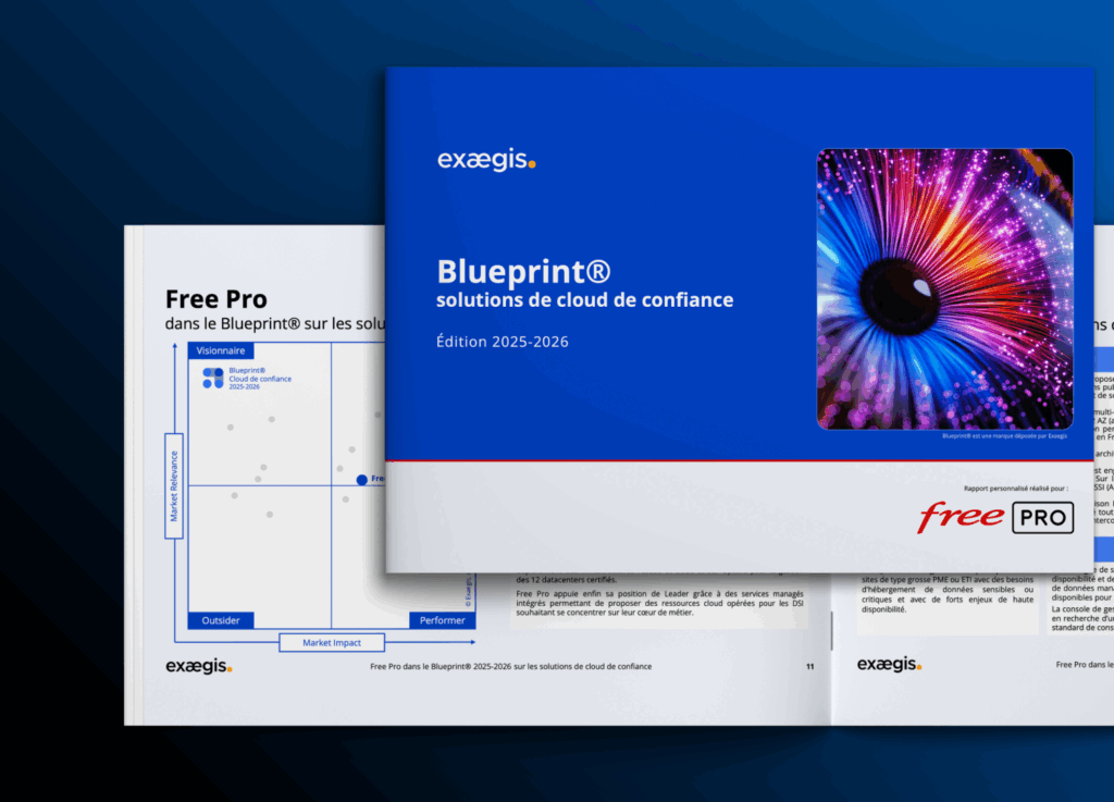 Pour y répondre, Exaegis Markess, référence indépendante de l’évaluation technologique, publie son Blueprint 2025-2026 – une analyse consacrée aux solutions de Cloud de confiance sur les principaux acteurs du marché français. Et parmi eux Free Pro, qui se distingue comme un acteur Leader !