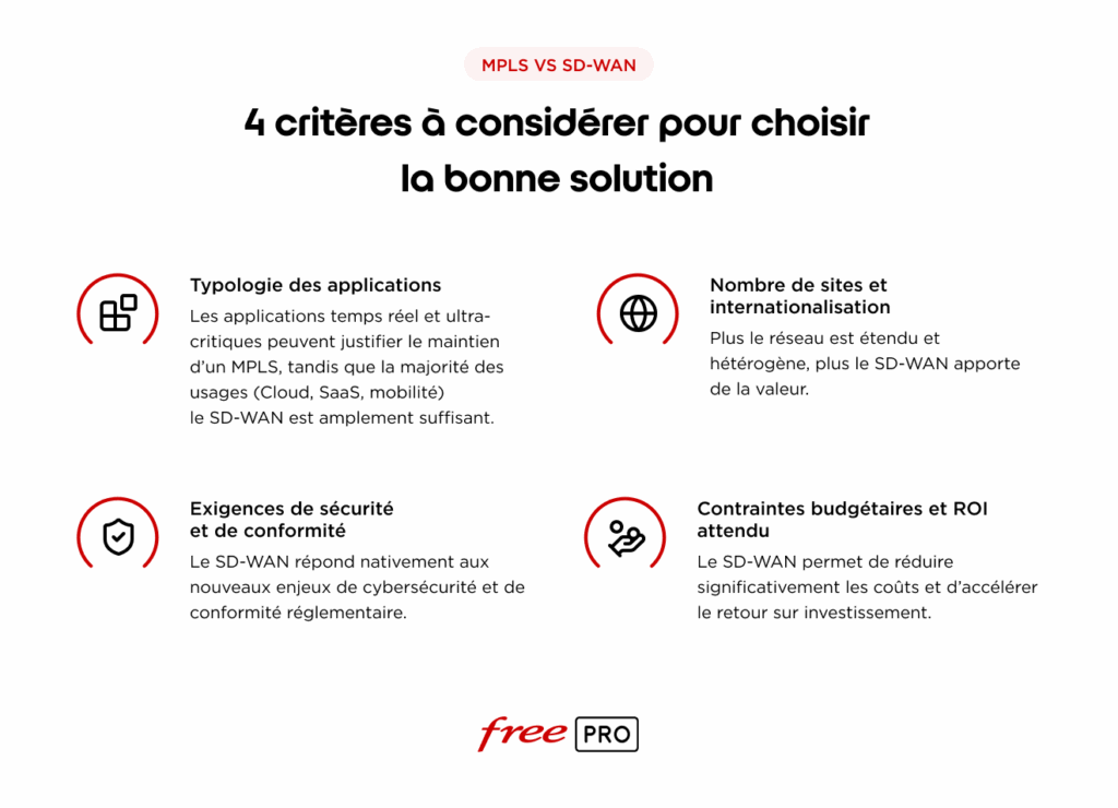 Le choix entre SD-WAN et MPLS dépend de plusieurs facteurs :