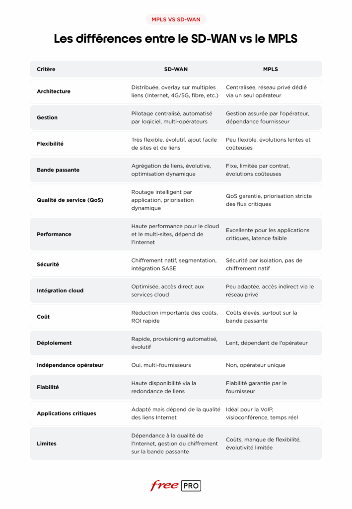 Récapitulatif global des différences entre le SD-WAN vs le MPLS